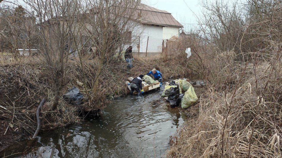 Galéria k článku FOTO: Dobrovoľníci vyčistili smetisko vo Veľkej Ide. Z potoka vytiahli aj starú sedačku