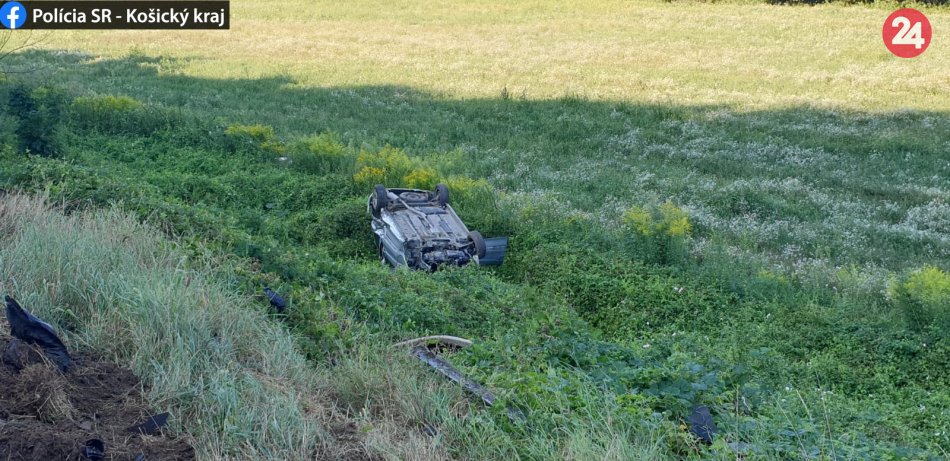 Galéria k článku Vodič s takmer štyri promile alkoholu prevrátil auto na strechu pri obci Bohúňovo, FOTO