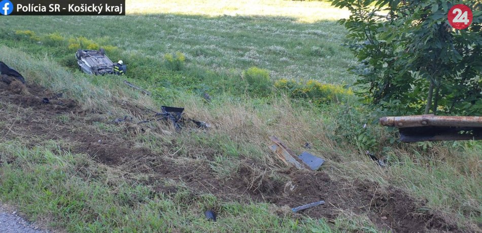 Galéria k článku Vodič s takmer štyri promile alkoholu prevrátil auto na strechu pri obci Bohúňovo, FOTO