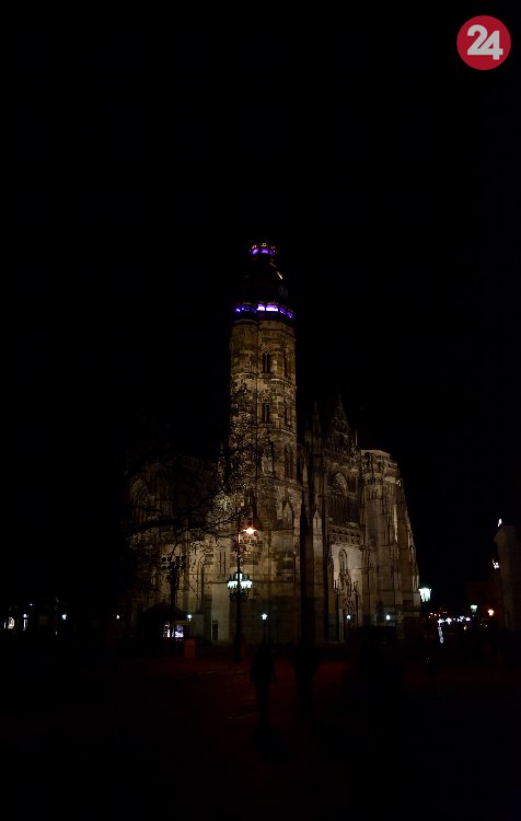 Galéria k článku FOTO: Vežu Dómu sv. Alžbety odeli do fialovej svetelnej róby