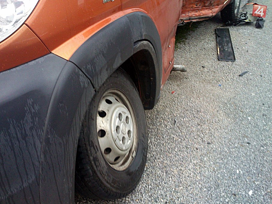 Galéria k článku FOTO + VIDEO z miesta nehody: Takto skončili v sebe dodávka a miestny Ford