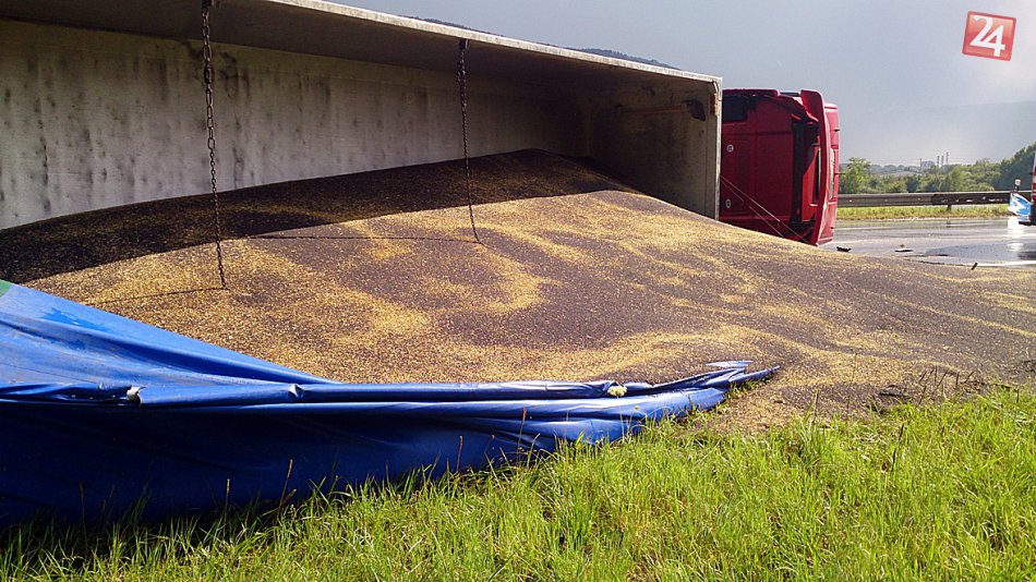 Galéria k článku FOTO + VIDEO: Prevrátený kamión s repkou olejnou paralizoval hlavný ťah pri Rožňave