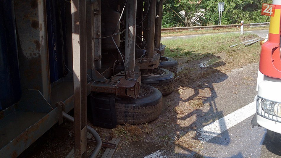Galéria k článku FOTO + VIDEO: Prevrátený kamión s repkou olejnou paralizoval hlavný ťah pri Rožňave