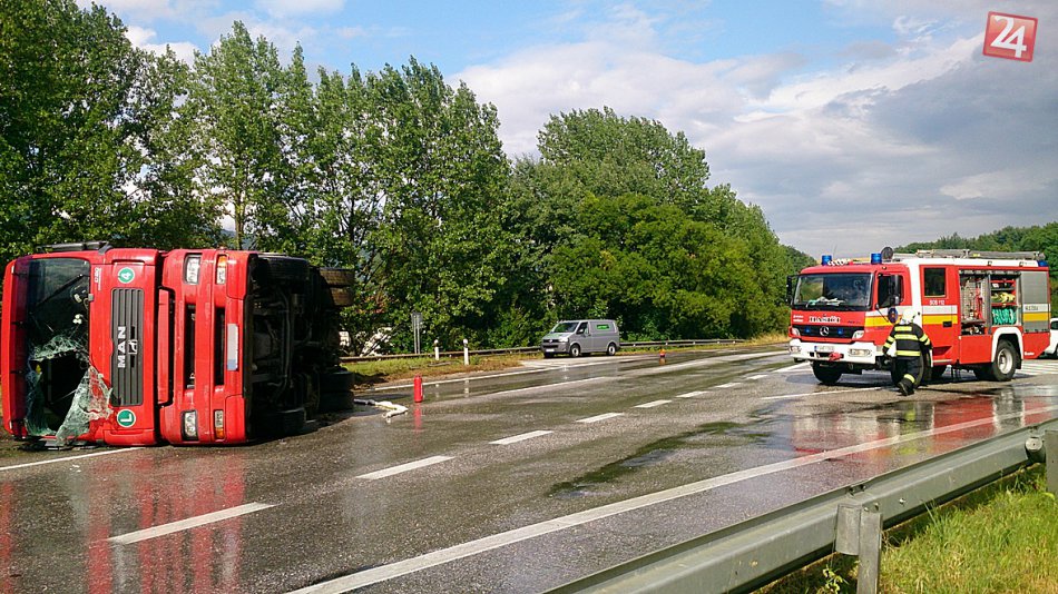 Galéria k článku FOTO + VIDEO: Prevrátený kamión s repkou olejnou paralizoval hlavný ťah pri Rožňave