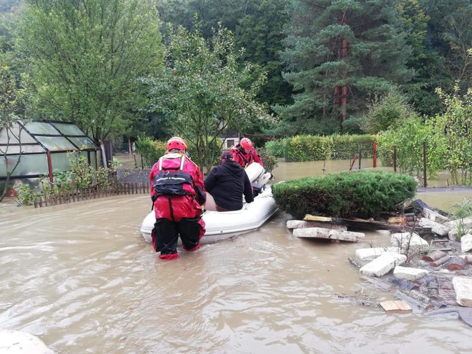 Galéria k článku Hasiči evakuovali ľudí aj psov z chatovej oblasti pri Košiciach, FOTO