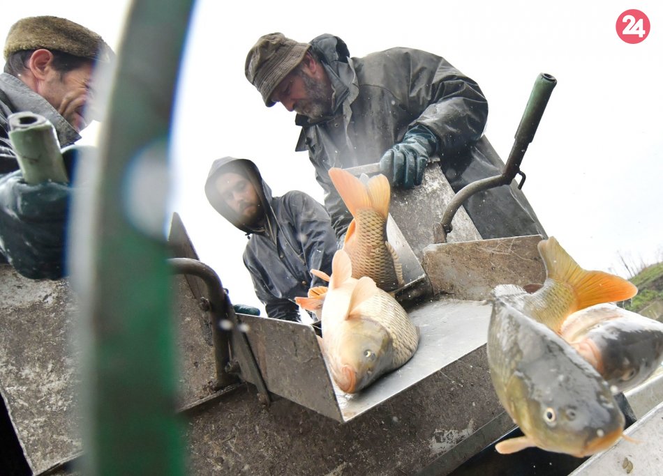 Galéria k článku V Iňačovciach začali s výlovom vianočných kaprov: Sú bez mikroplastov, FOTO