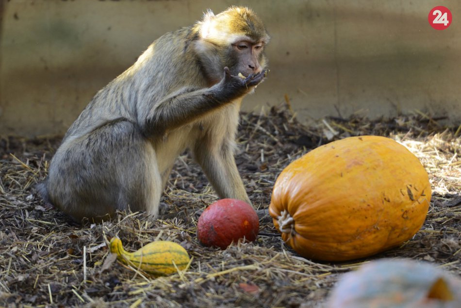 Galéria k článku FOTO: Takto si užívali Hallowen zvieratá v zoo. Kŕmili ich potravou servírovanou v tekviciach