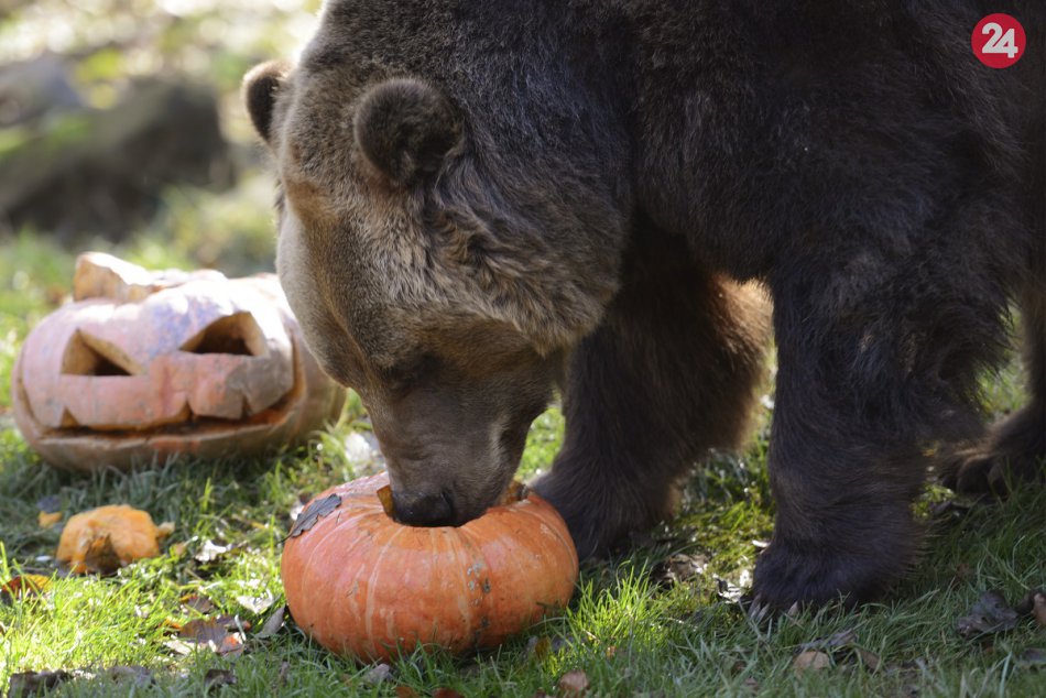 Galéria k článku FOTO: Takto si užívali Hallowen zvieratá v zoo. Kŕmili ich potravou servírovanou v tekviciach