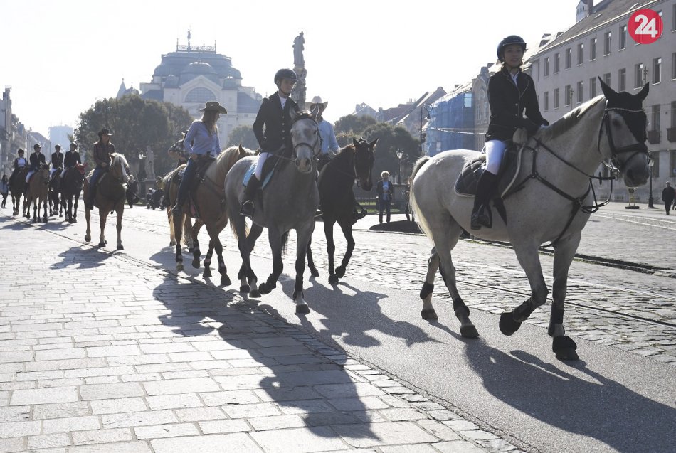 Galéria k článku Hubertová jazda ako sa patrí. Mesto patrilo elegantným jazdcom na majestátnych koňoch, FOTO