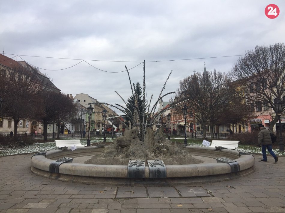 Galéria k článku FOTO: V meste už inštalujú vianočnú výzdobu. Strom zdobia pomocou vysokozdvižnej plošiny