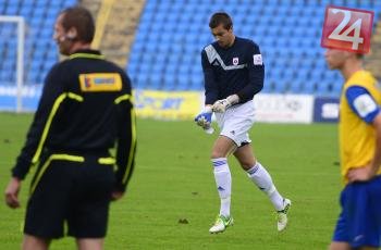 Brankár MFK Ružomberok Tomáš Lešňovský prichádza na ihrisko po vylúčení spoluhráča - brankára Milorada Nikoliča