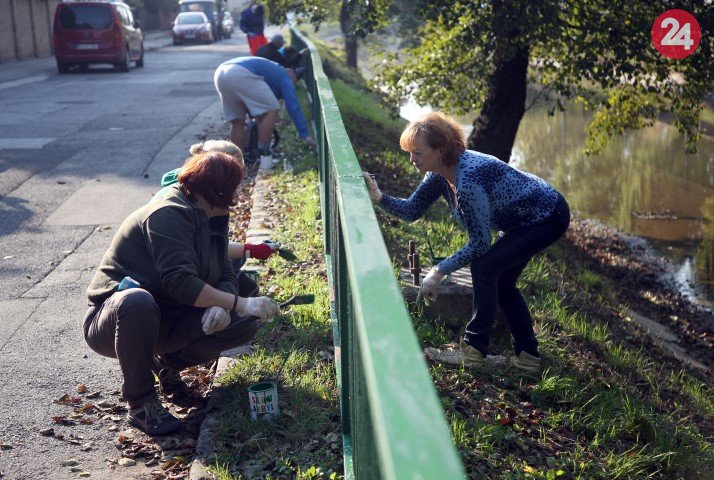 Galéria k článku Dobrovoľníci z magistrátu a mestských podnikov opäť natierali plot pri Mlynskom náhone, FOTO