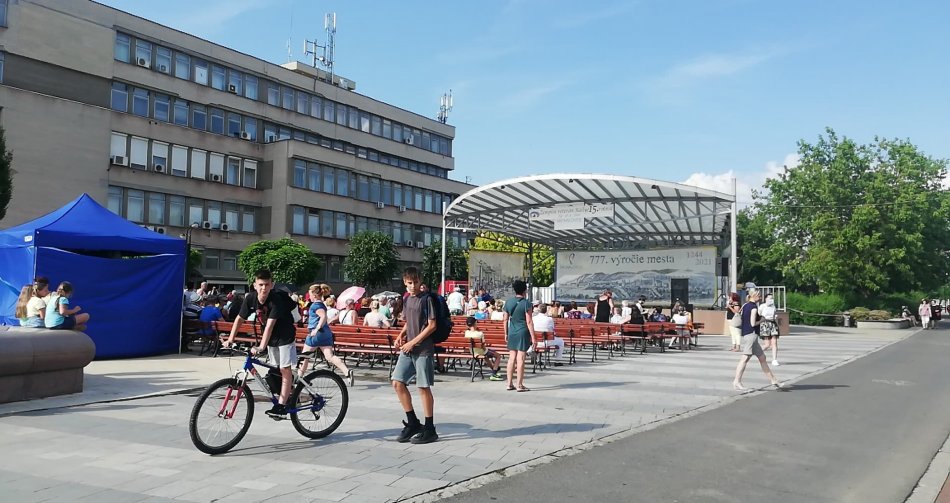 Galéria k článku Hudba okolo fontány lákadlom: Lavičky pod tribúnou boli zaplnené, FOTO a VIDEO