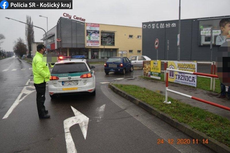 Galéria k článku Policajti zasahovali pri michalovskom obchodnom centre, FOTO z miesta nehody