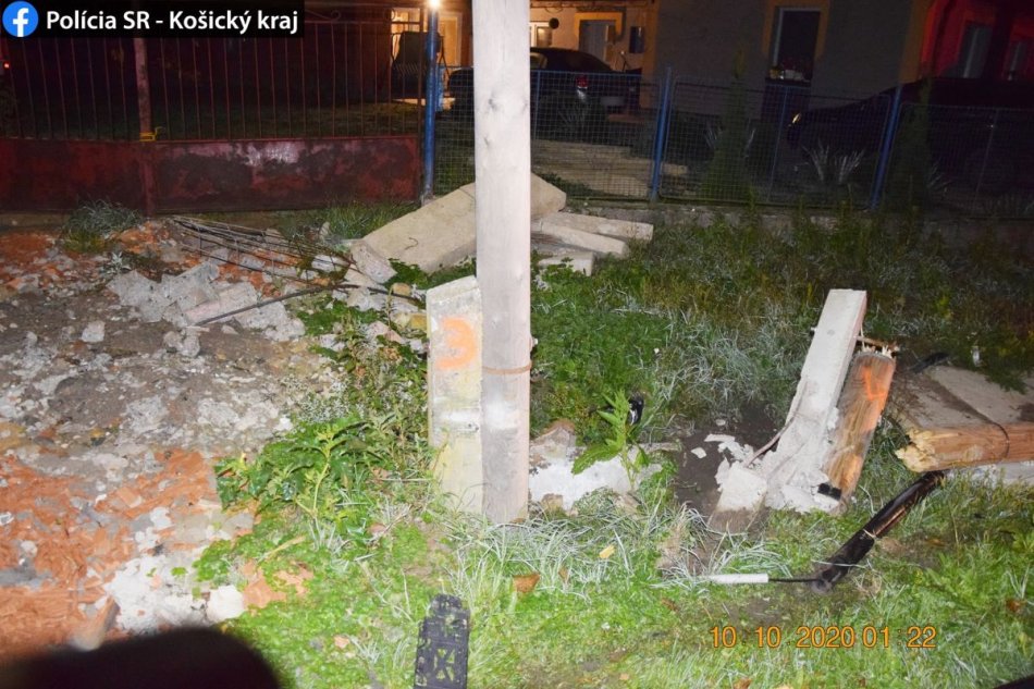Galéria k článku Michalovčan narazil do stĺpa a skončil s autom na streche, FOTO
