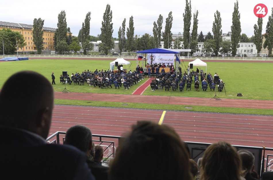 Galéria k článku Netradičné promócie na štadióne, vietor rozfúkal diplomy, FOTO