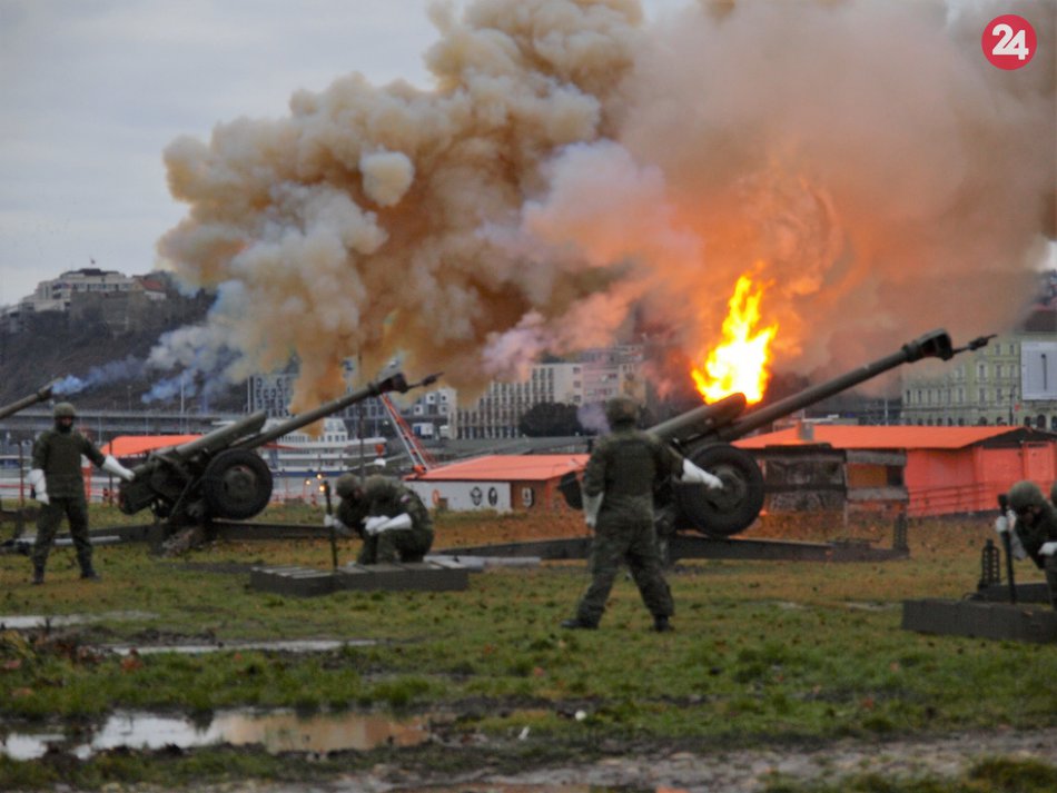Galéria k článku Vojaci privítali Nový rok 20 delostreleckými salvami z Tyršovho nábrežia, FOTO