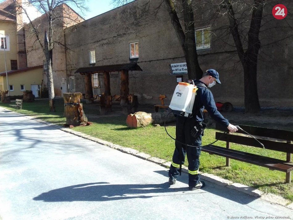 Galéria k článku Dobrovoľní hasiči z Rožňavy v akcii: Dezinfikovali mesto, FOTO