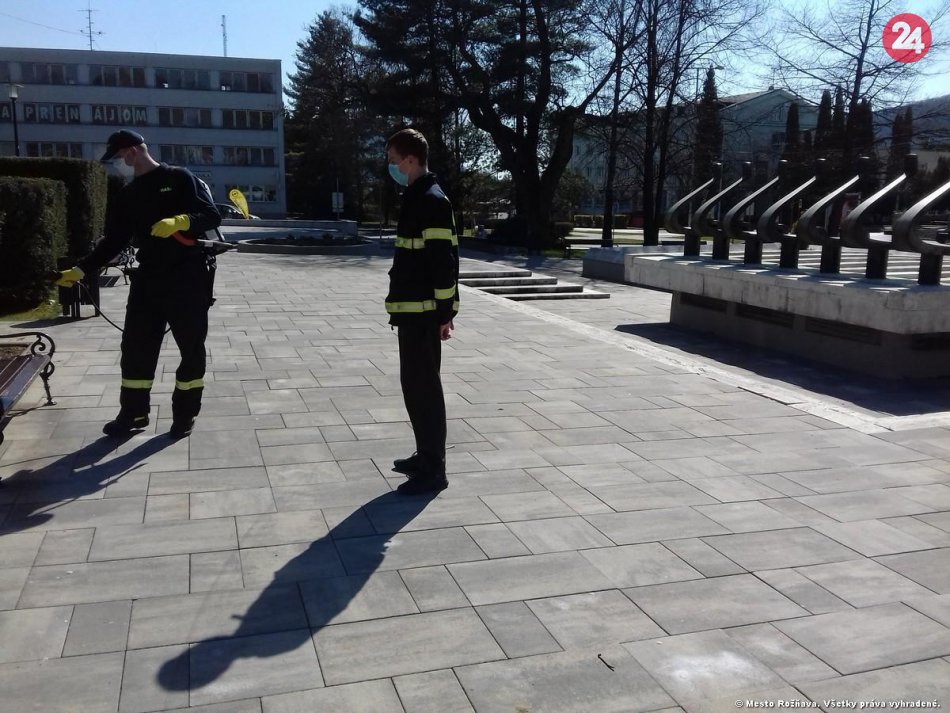 Galéria k článku Dobrovoľní hasiči z Rožňavy v akcii: Dezinfikovali mesto, FOTO