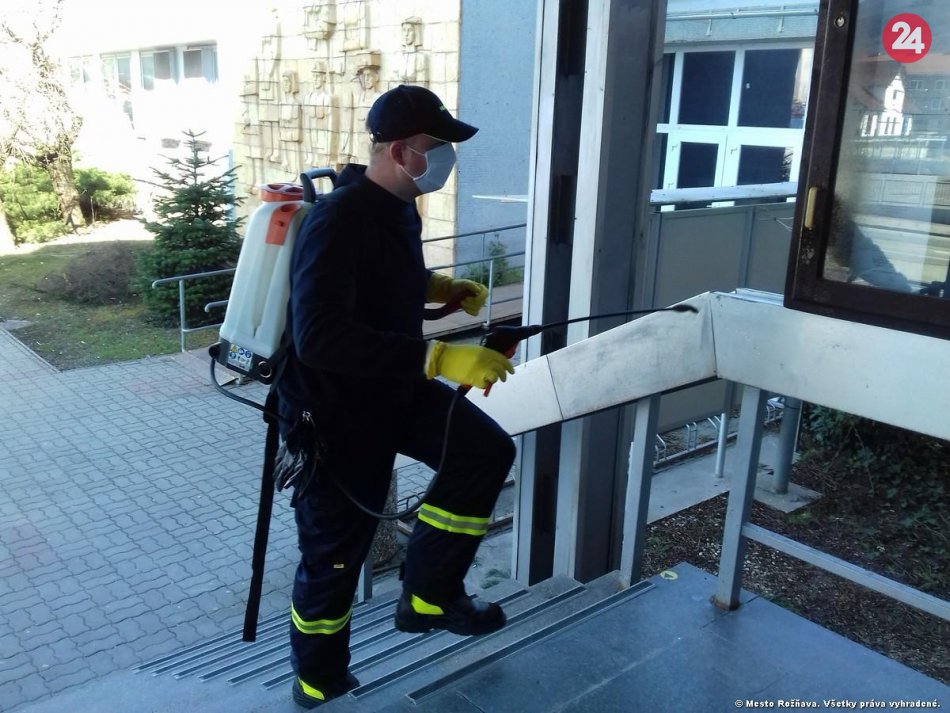 Galéria k článku Dobrovoľní hasiči z Rožňavy v akcii: Dezinfikovali mesto, FOTO