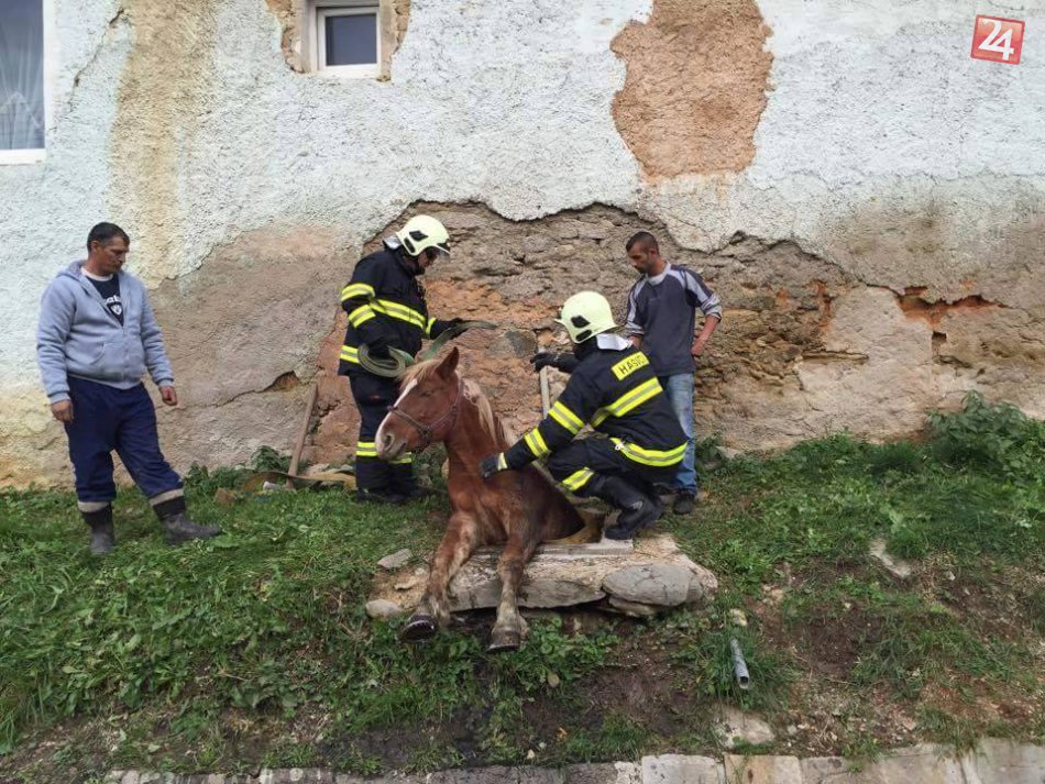 Galéria k článku FOTO: Kuriózna záchrana neďaleko Rožňavy, kôň spadol do kanalizačnej šachty
