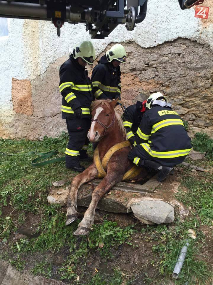 Galéria k článku FOTO: Kuriózna záchrana neďaleko Rožňavy, kôň spadol do kanalizačnej šachty