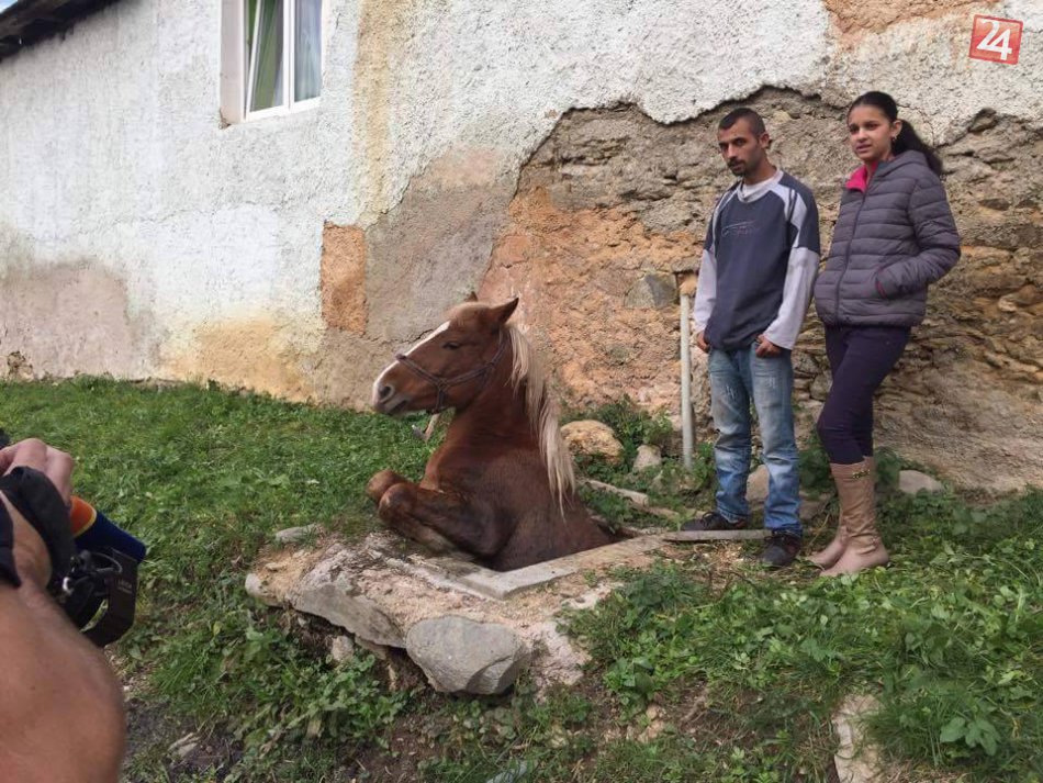 Galéria k článku FOTO: Kuriózna záchrana neďaleko Rožňavy, kôň spadol do kanalizačnej šachty