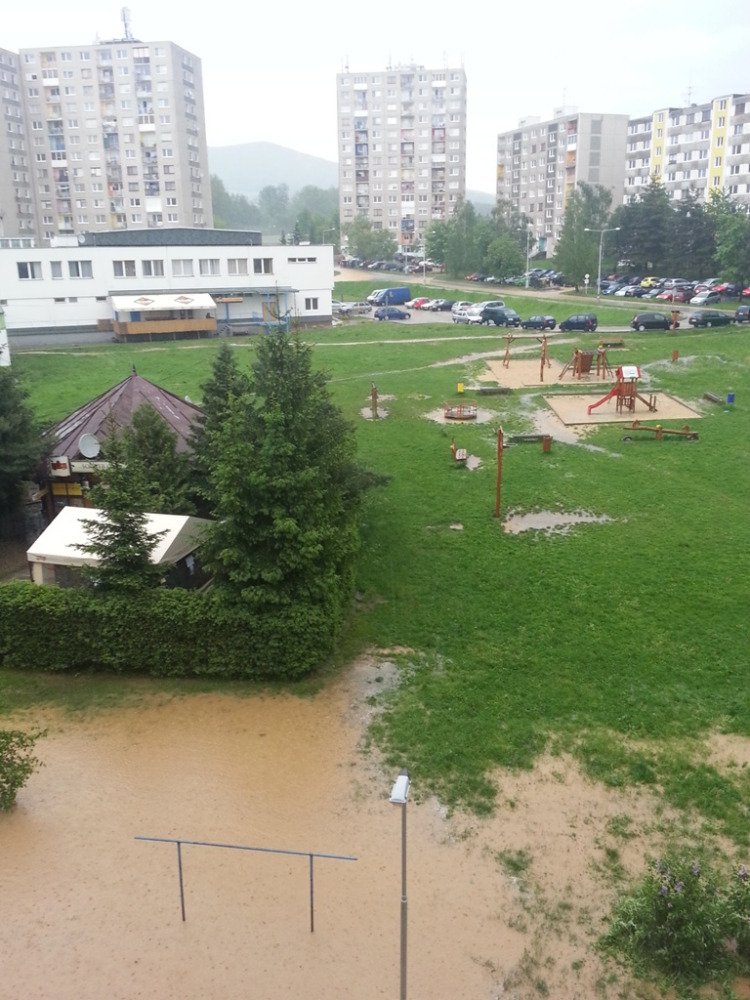 Galéria k článku OBRAZOM: Po sídlisku Juh sa valí voda, chodníky i cesty zaplavené