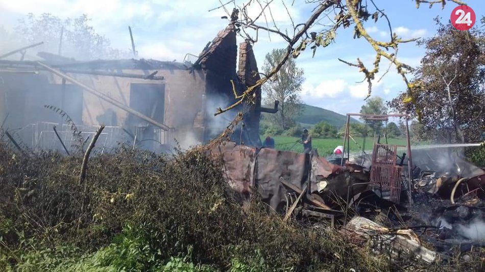 Galéria k článku Požiar domu v Kunovej Teplici: Zasahovali dobrovoľníci aj profesionáli, FOTO