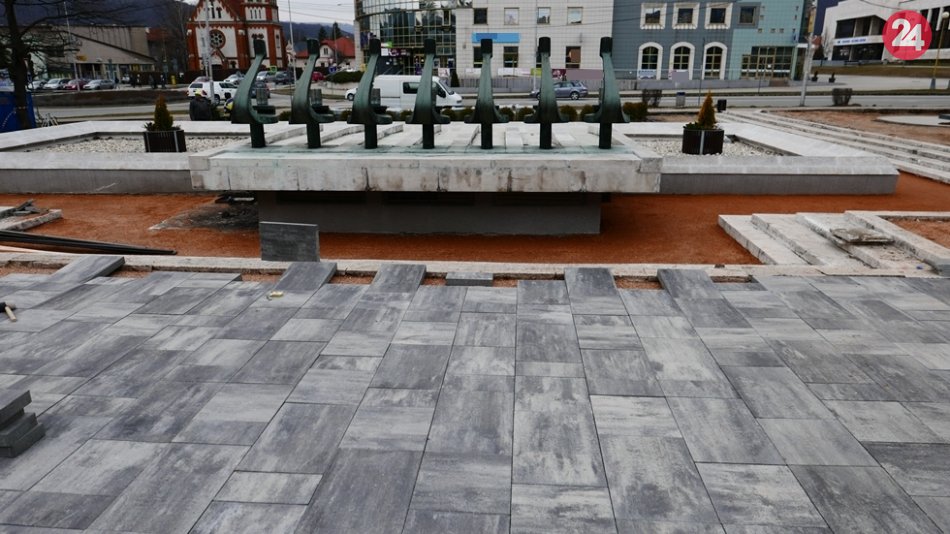 Galéria k článku Asfalt okolo fontány je už minulosťou, nahradila ho takáto dlažba, FOTO