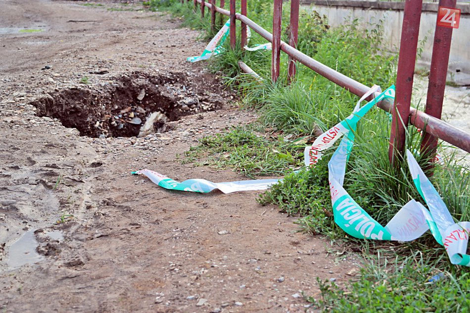 Galéria k článku Drázus po lejaku: Voda odkryla aj podzemné elektrické vedenie, FOTO