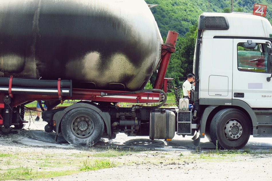 Galéria k článku Rozruch pri vlakovej stanici: Cisterna v plameňoch, vodič v nemocnici, FOTO