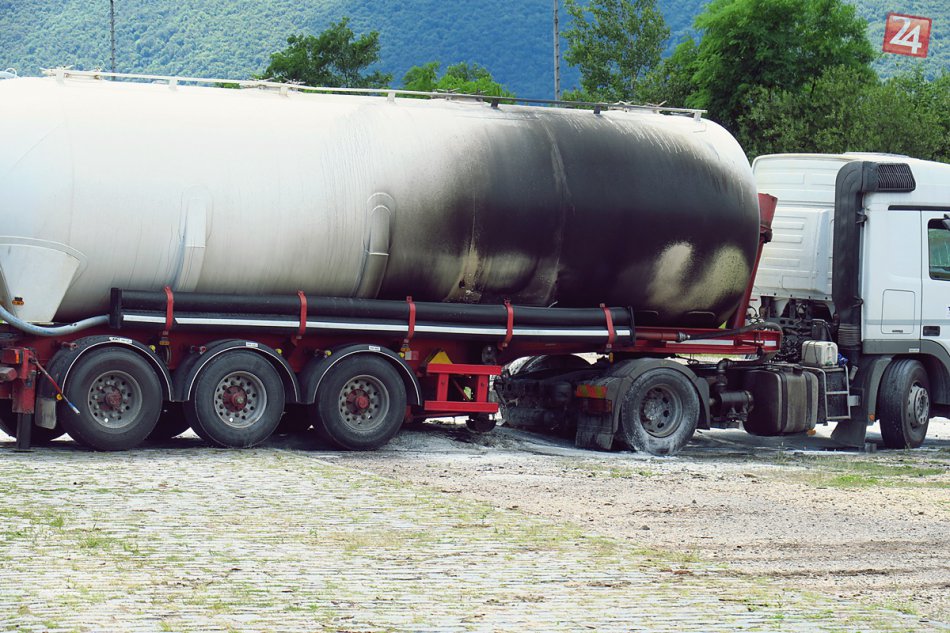 Galéria k článku Rozruch pri vlakovej stanici: Cisterna v plameňoch, vodič v nemocnici, FOTO