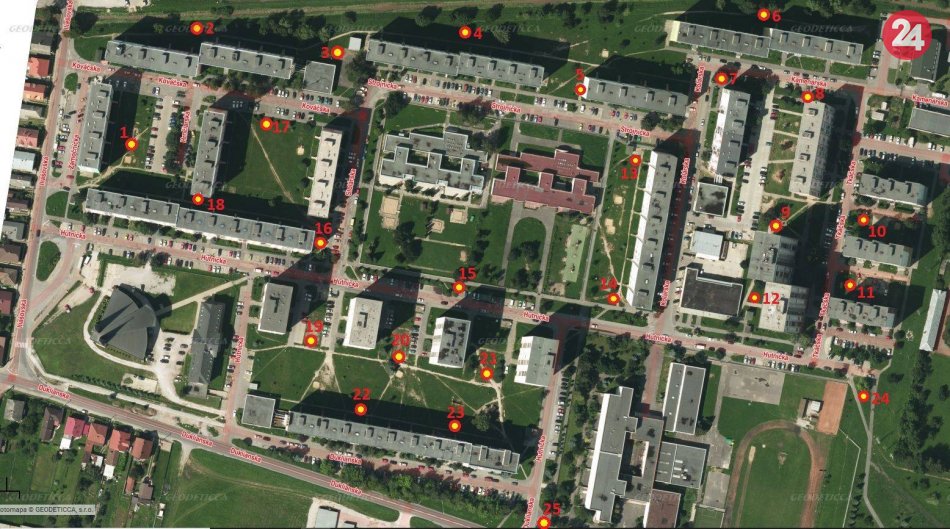 Rozmiestnenie psích toaliet na sídlisku Západ