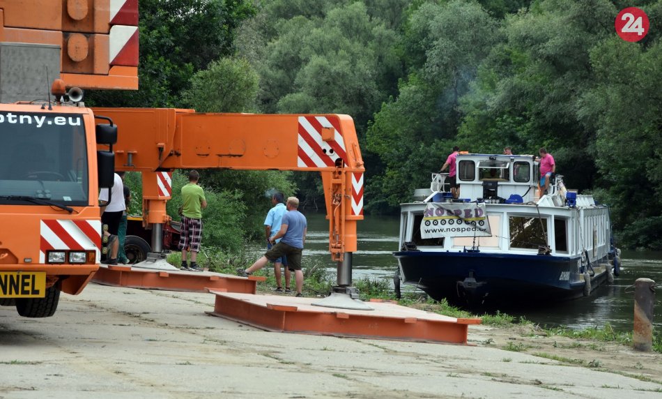 Galéria k článku Pozrite si to na VIDEU: Takto naložili na ťahač výletnú loď putujúcu na Domašu