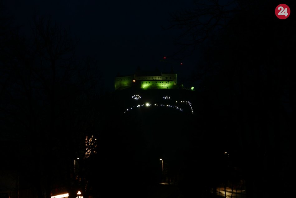 Galéria k článku V Podhradí spomínali na smutné výročie: Vysvietený hrad aj smutný smajlík, FOTO!