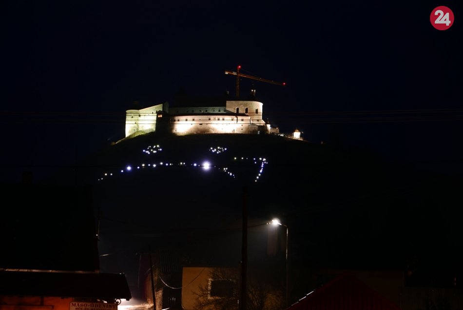 Galéria k článku V Podhradí spomínali na smutné výročie: Vysvietený hrad aj smutný smajlík, FOTO!