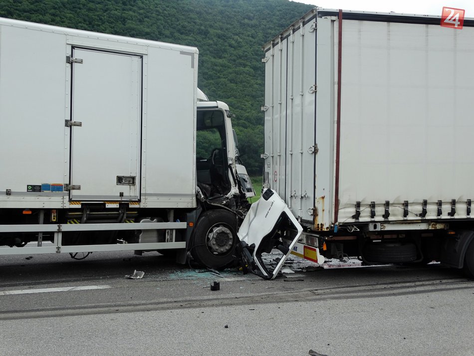 Galéria k článku Zrážka kamiónov a dodávky neďaleko Vidovej: Hasiči museli vyprostiť človeka! FOTO