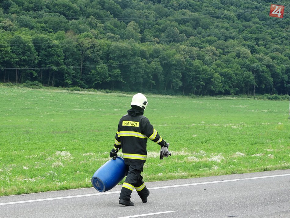 Galéria k článku Zrážka kamiónov a dodávky neďaleko Vidovej: Hasiči museli vyprostiť človeka! FOTO
