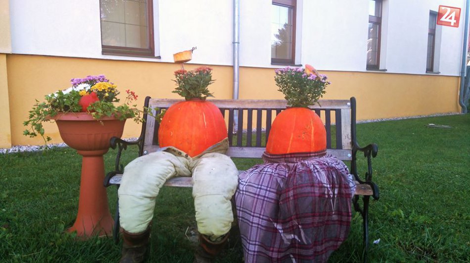 Galéria k článku Jesenná výzdoba v známej dedine púta pozornosť: Ľudí víta utešený tekvicový pár