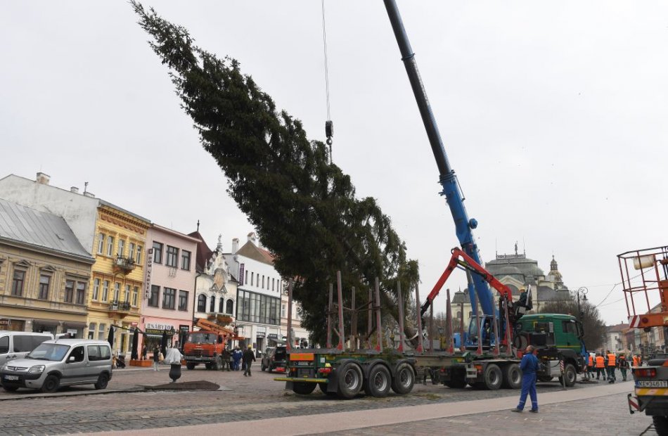 Galéria k článku Hlavnú ulicu už zdobí vianočný stromček. Kedy sa slávnostne rozsvieti? FOTO