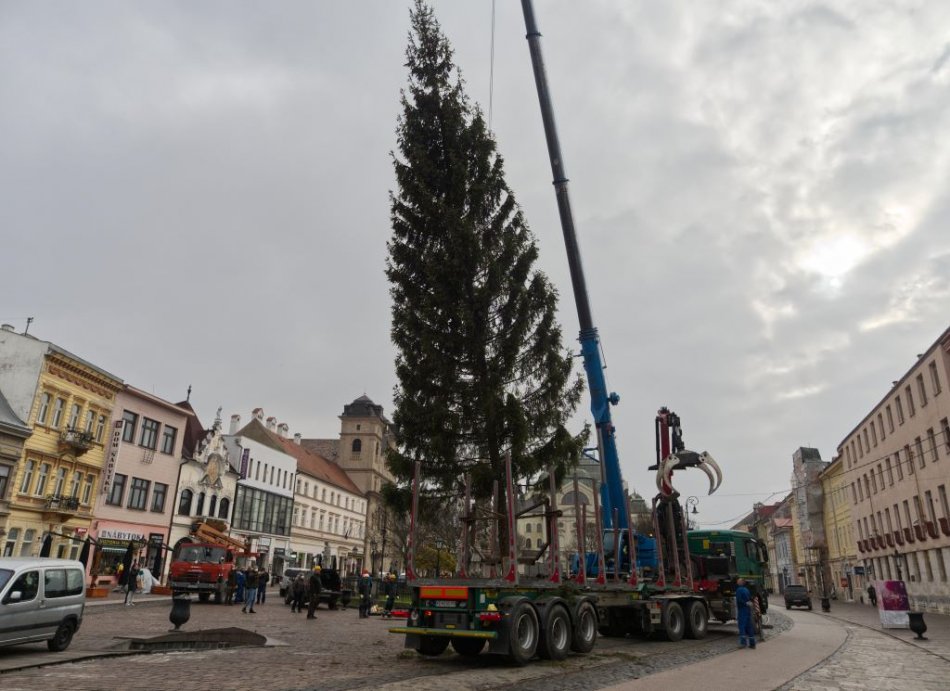 Galéria k článku Hlavnú ulicu už zdobí vianočný stromček. Kedy sa slávnostne rozsvieti? FOTO