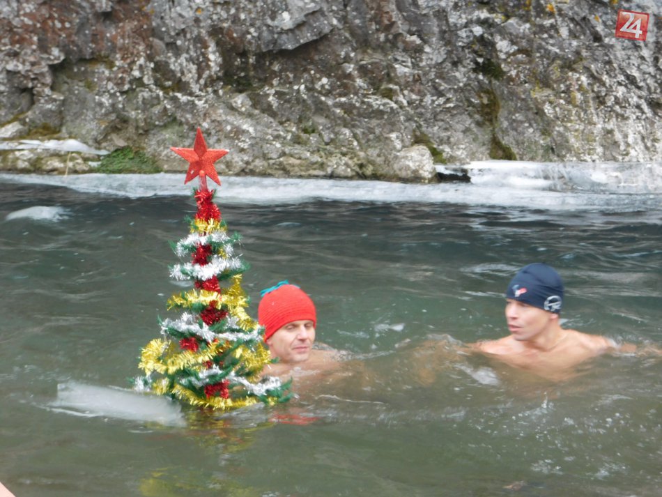 Galéria k článku Otužilci zo Spiša v akcii: V ľadovom Hornáde sa kúpali s vianočným stromčekom