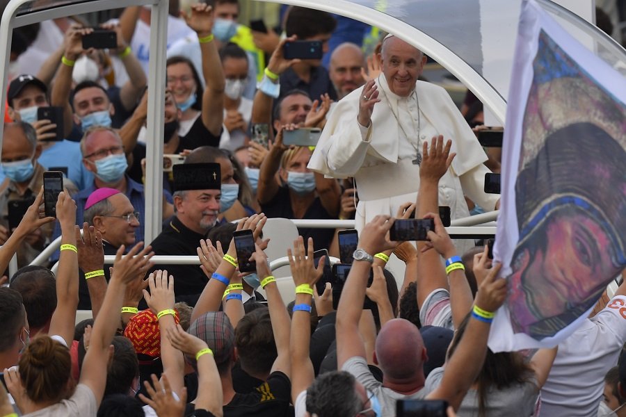 Galéria k článku Pápež František na štadióne Lokomotíva rozdával úsmevy: Vítali ho tisíce mladých, VIDEO