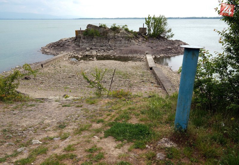 Galéria k článku Na Šírave došlo k poklesu vodnej hladiny: FOTO ostrovčeka, kde sa dostanete už aj suchou nohou