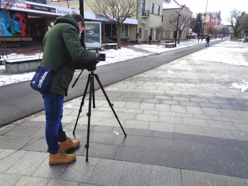 Na fotke michalovské námestie s kameramanom mestskej televízie. Martina je totiž ich redaktorkou.