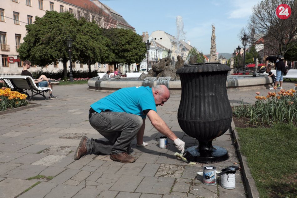 Galéria k článku Úradníci z magistrátu a mestských podnikov opustili kancelárie a v uliciach mesta natreli koše