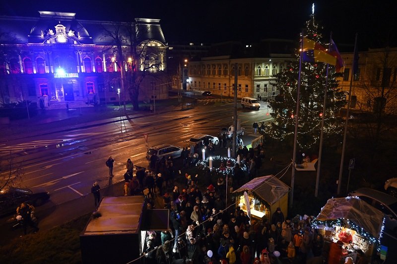 Galéria k článku Pred úradom KSK rozsvietili 15-metrový stromček: Nájdete tu aj vianočné stánky, VIDEO