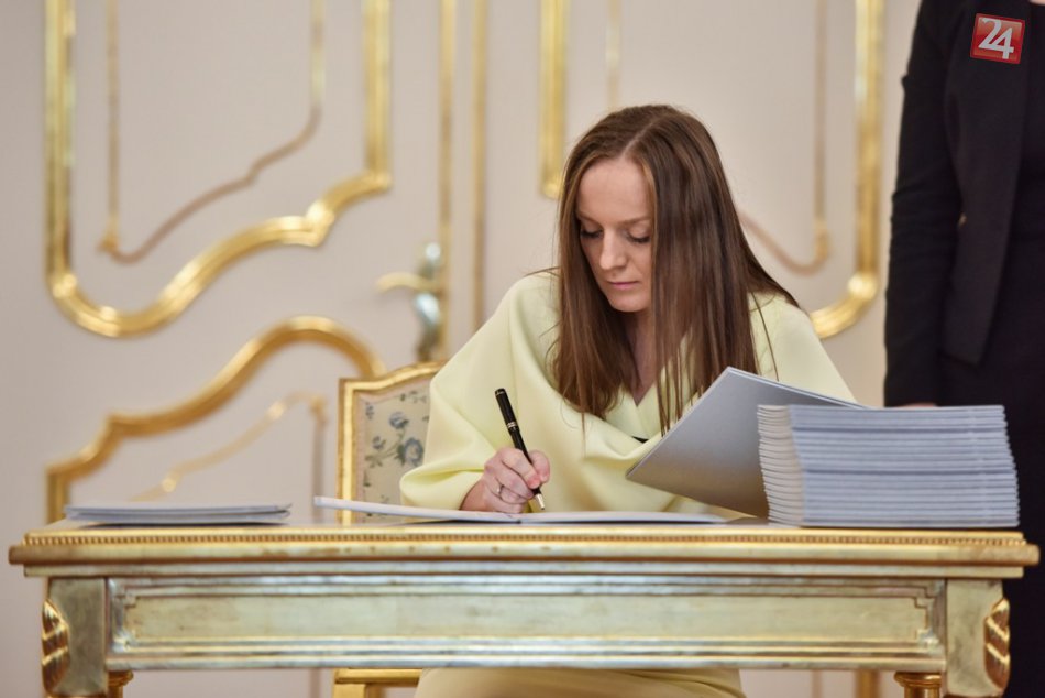 Na snímke sudkyňa Michaela Doňáková podpisuje menovací dekrét počas menovania prezidentom SR Andrejom Kiskom 4. decembra 2017 v Bratislave.