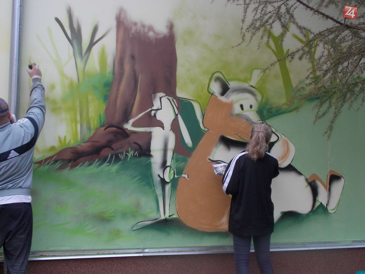Galéria k článku Sprejeri skrášlili budovu škôlky: Deti víta macko aj kôň, pozrite si úchvatné graffity